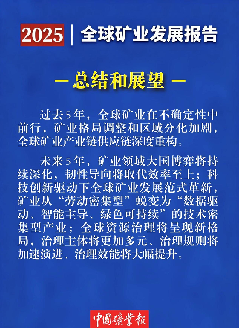 1024日在2025(第二十七屆)中國國際礦業(yè)大會上中國地質(zhì)調(diào)查局國際礦業(yè)研究中心發(fā)布《全球礦業(yè)發(fā)展報告2025